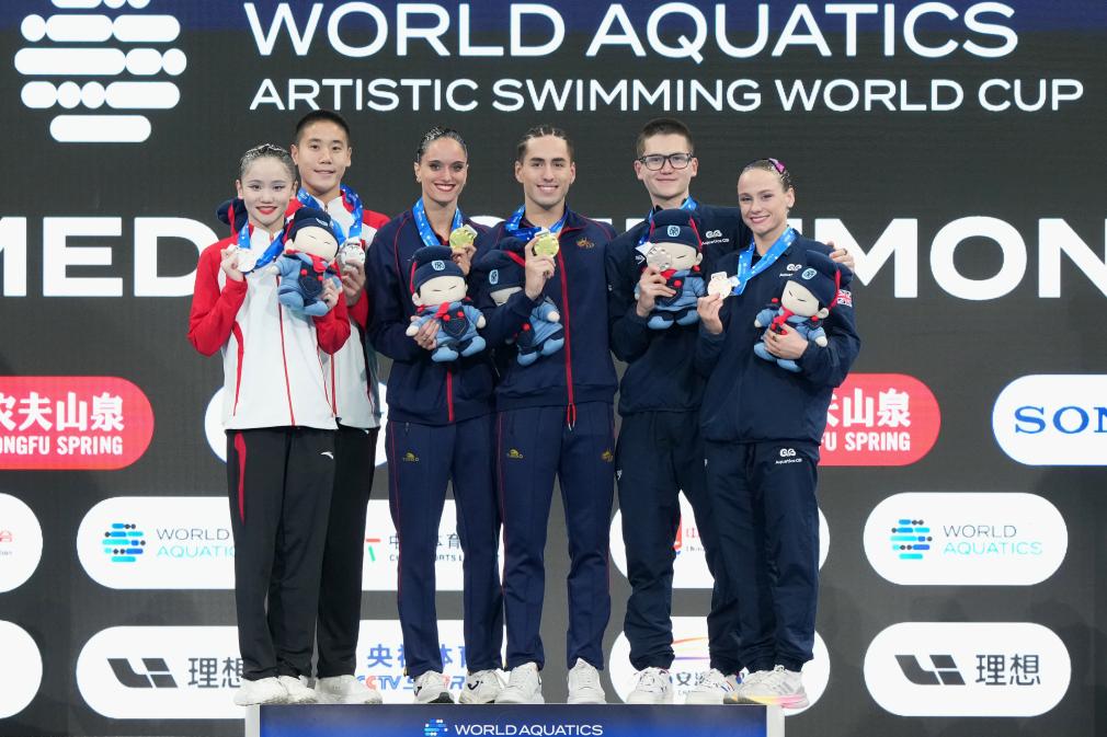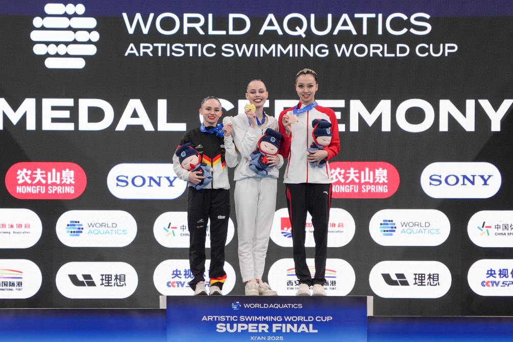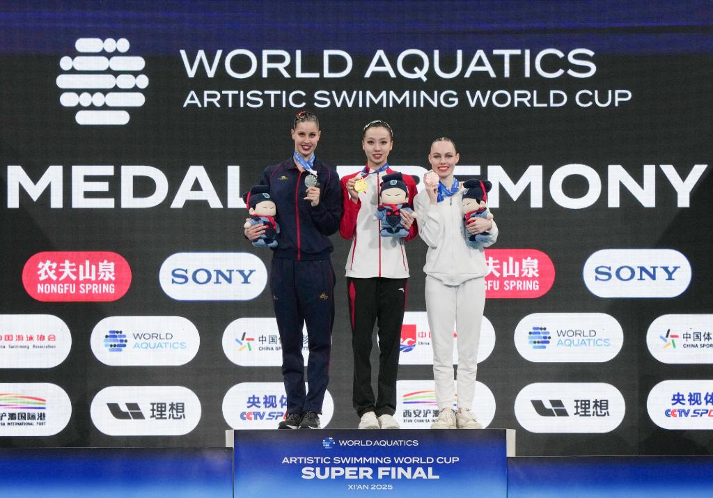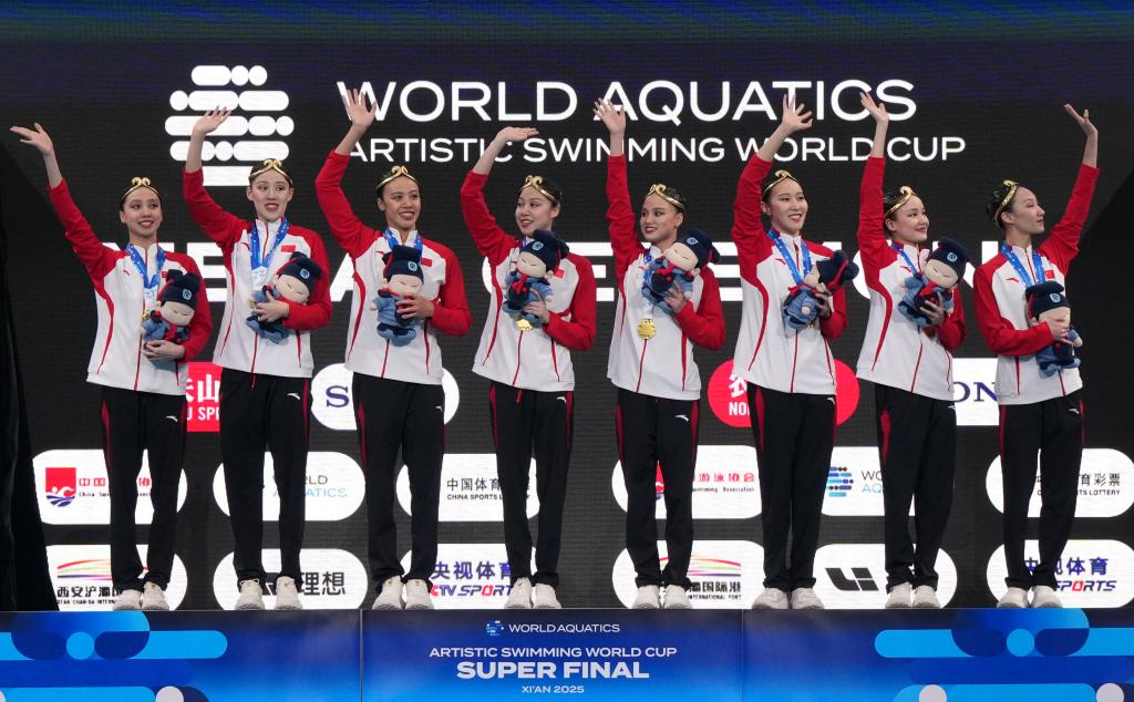 當(dāng)日,在西安舉行的2025年花樣游泳世界杯總決賽集體技術(shù)自選決賽中,中國隊(duì)奪得冠軍。