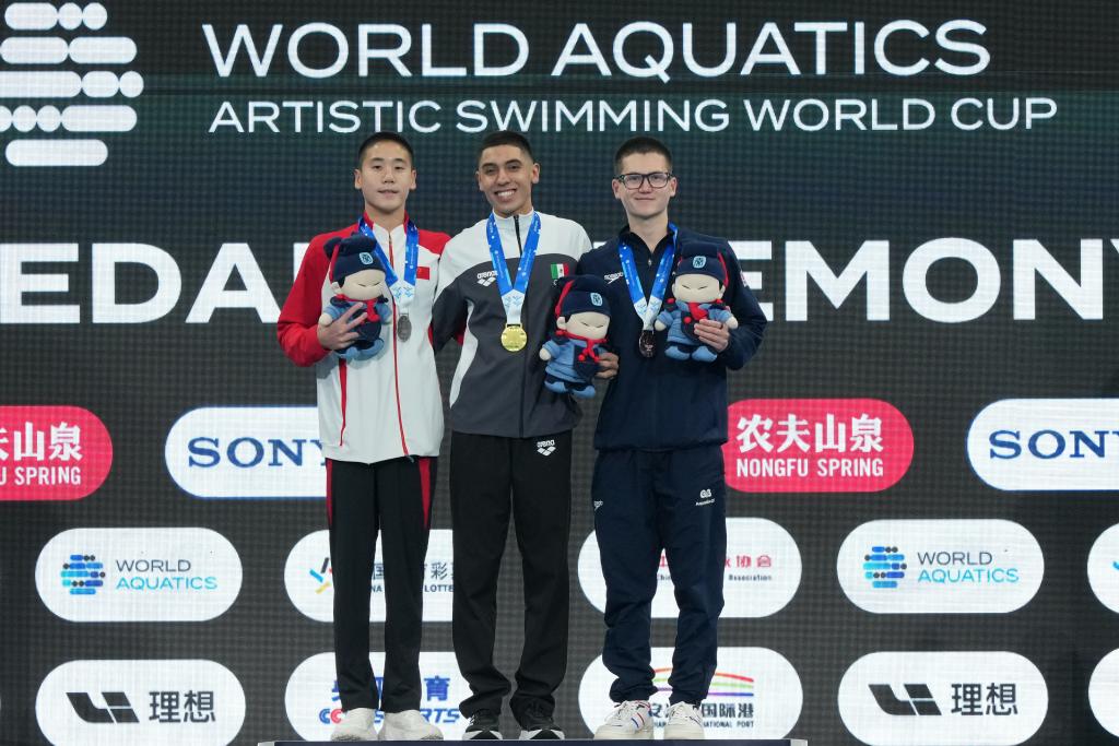 新華社照片,西安,2025年6月13日 6月13日,冠軍墨西哥選手比利亞洛沃斯·卡里略(中)、亞軍中國選手郭牧也(左)、季軍英國選手湯布林在頒獎儀式上。
