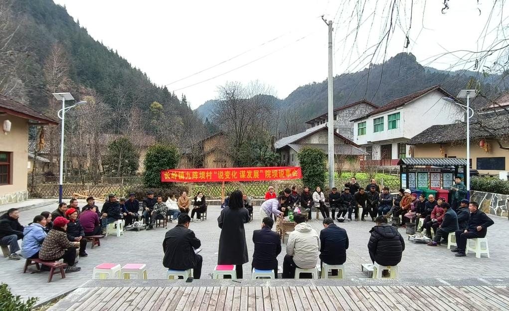 2024年12月29日,王冬梅(前左)在陜西省鎮(zhèn)巴縣長嶺鎮(zhèn)九陣壩村舉行的“院壩說事會”現(xiàn)場邀請村民發(fā)言。