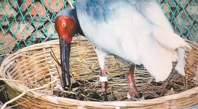 編號為116的朱鹮雌鳥 通訊員杜芳俊 邊莫涵 攝3月19日,在榆林市橫山區(qū)朱鹮人工繁育和野化放飛基地里,隨著生態(tài)監(jiān)測屏驟然亮起紅色信號,—編號為116的朱鹮雌鳥成功產(chǎn)下了今年的第一枚卵。